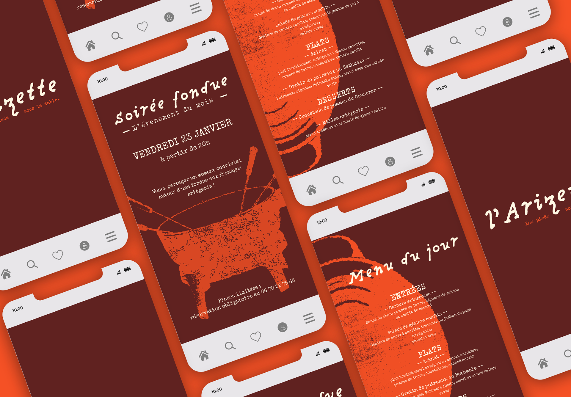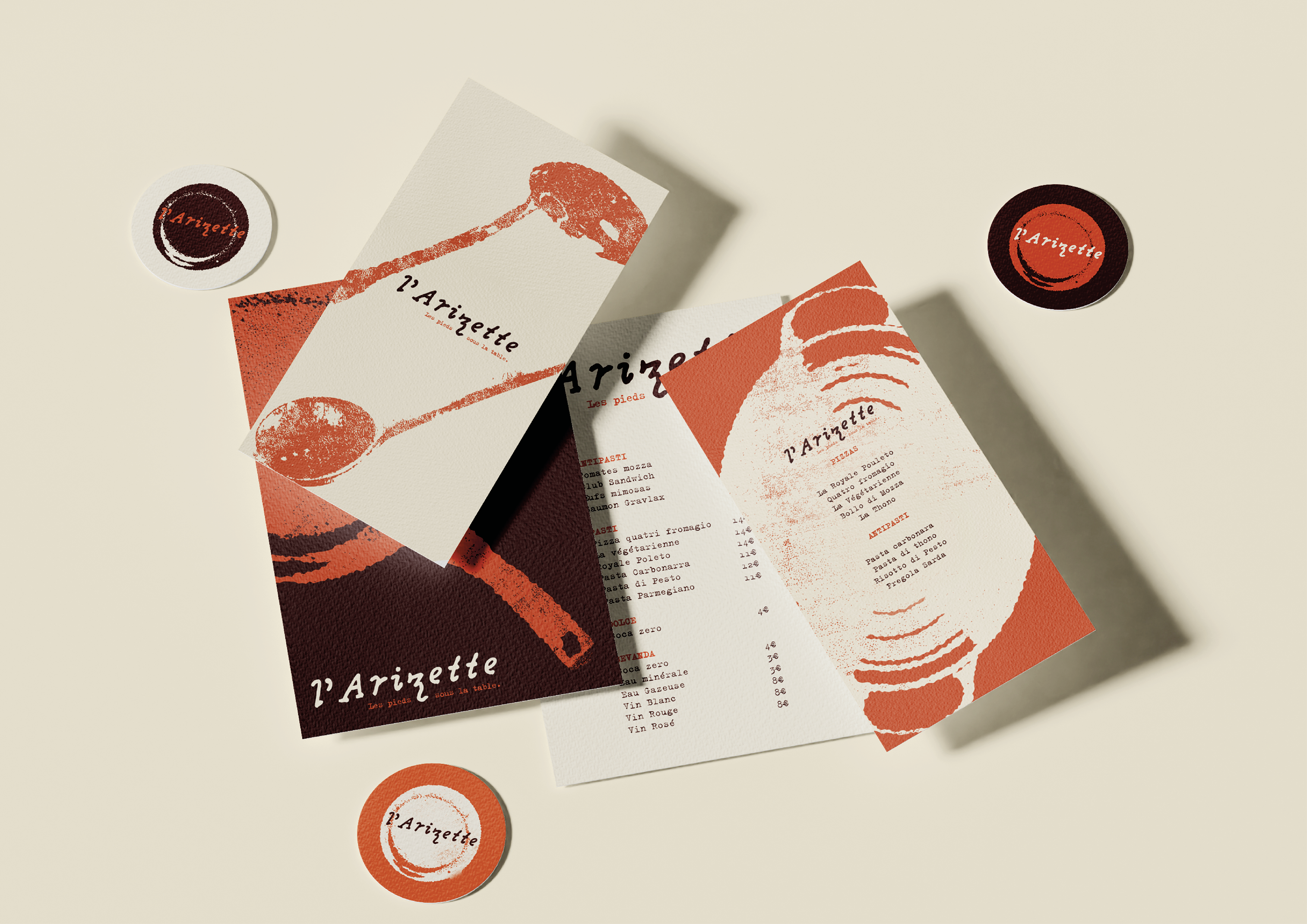 Réalisation de l'identité visuelle d'un nouveau restaurant convivial dans l'Ariège.