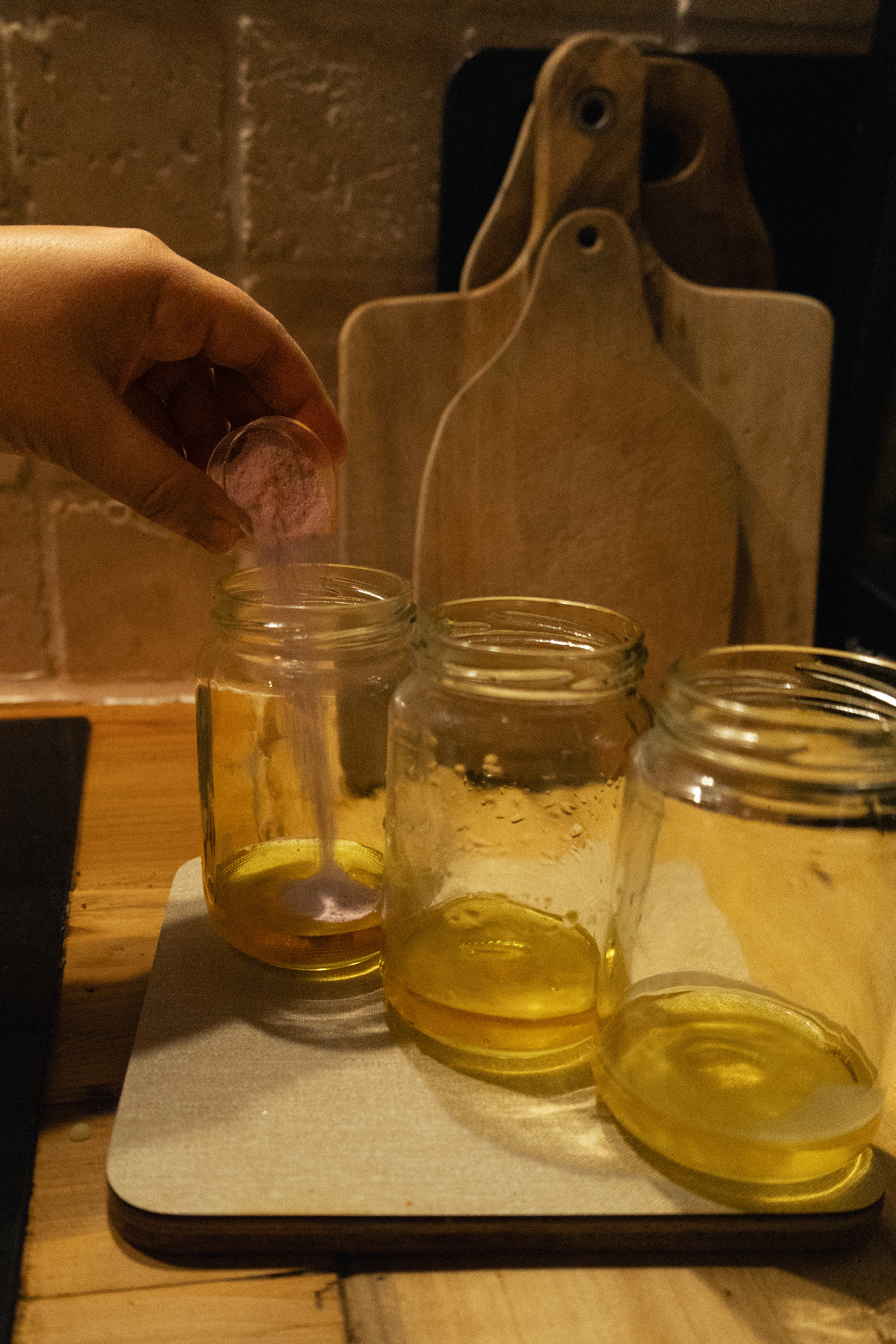 J’ai ainsi réalisé moi-même les craies grasses à partir de fleurs de mon jardin.